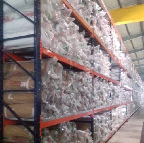 In horizontal storage racks, each bar acts as a support beam for the fabric roll, and racks can be fitted with slide-out arms or removable rods for easier handling. Rolls can be accessed using manpower, trolleys, or material handling equipment.